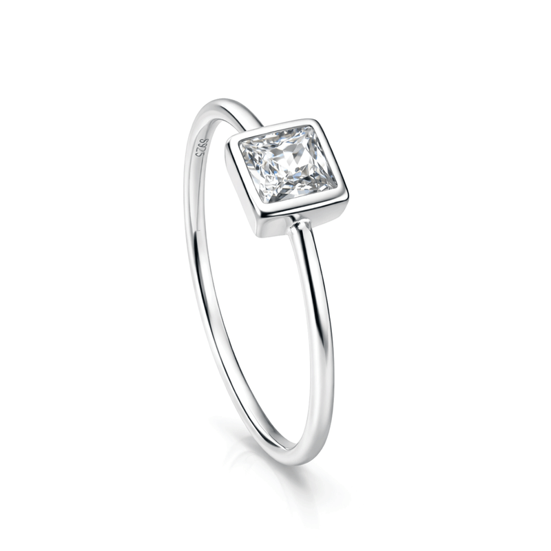 Anel com Zircônia Quadrada em Prata 925
