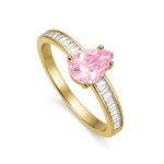 Anel Gota Zircônia Rosa Aro Baguete em Banho de Ouro 18K