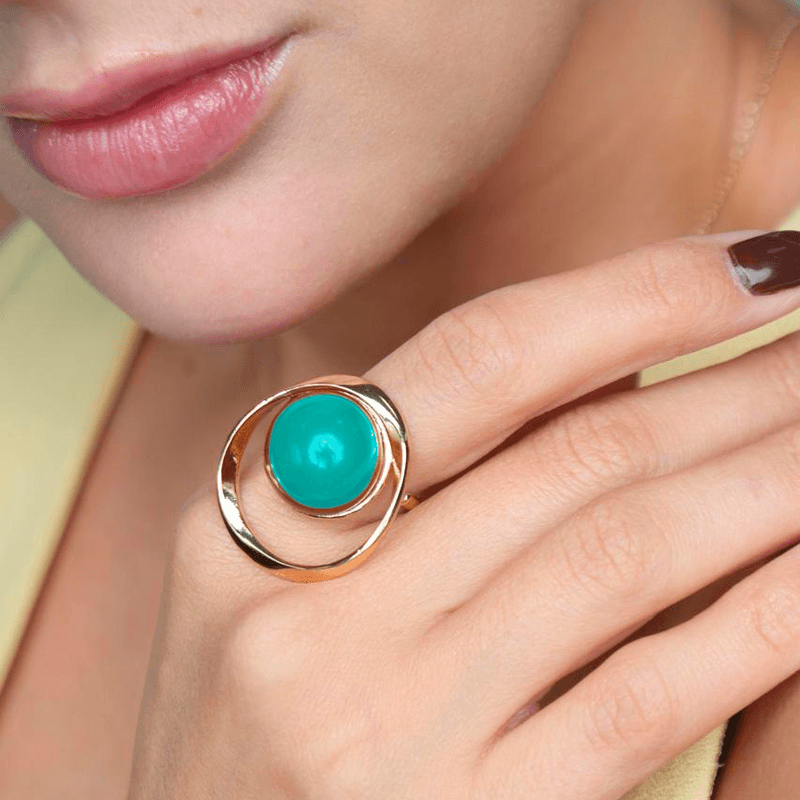 Anel Oval Regulável Turquesa em Banho de Ouro 18K