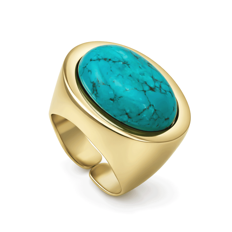 Anel Oval Turquesa Regulável em Banho de Ouro 18K