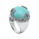 Anel Redondo Turquesa e Marcassita em Prata 925