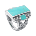 Anel Retangulo Turquesa e Marcassita em Prata 925