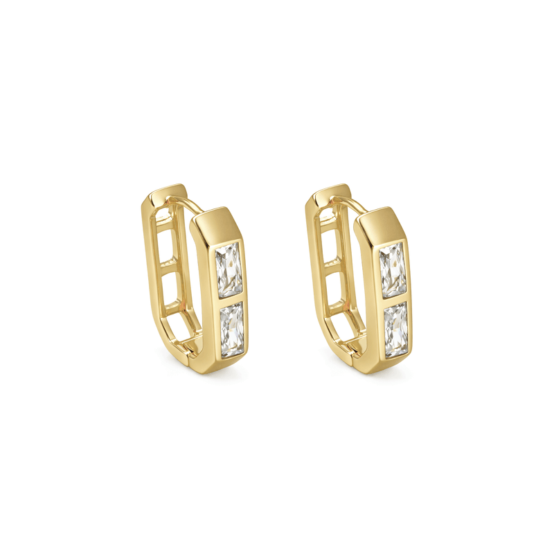 Argola Click Retangular com Zircônias em Banho de Ouro 18K