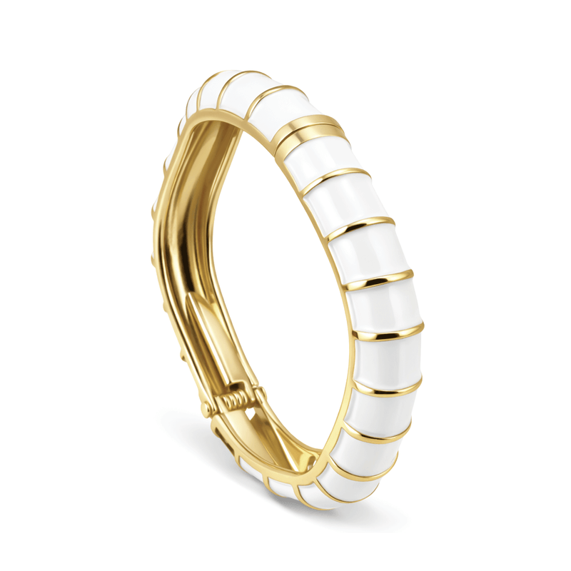 Bracelete Orgânico em Banho de Ouro 18K Esmaltado Branco