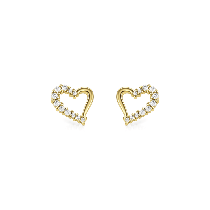 Brinco Coração com Zircônias em Banho Ouro 18K