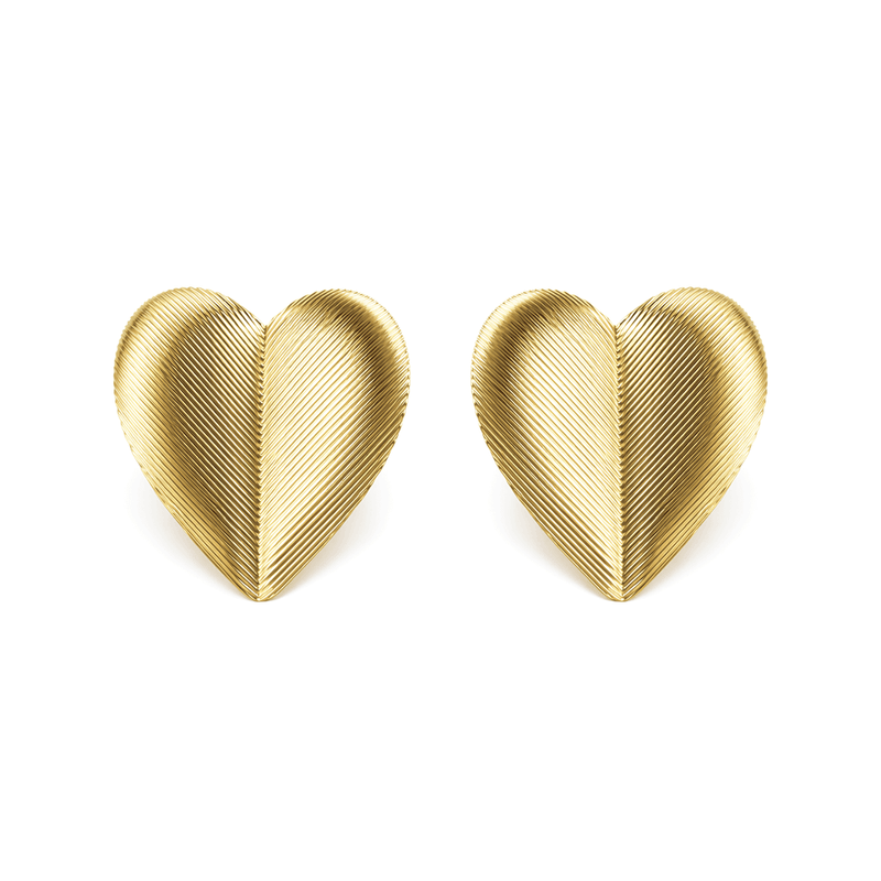 Brinco Coração Vincado em Banho de Ouro 18K
