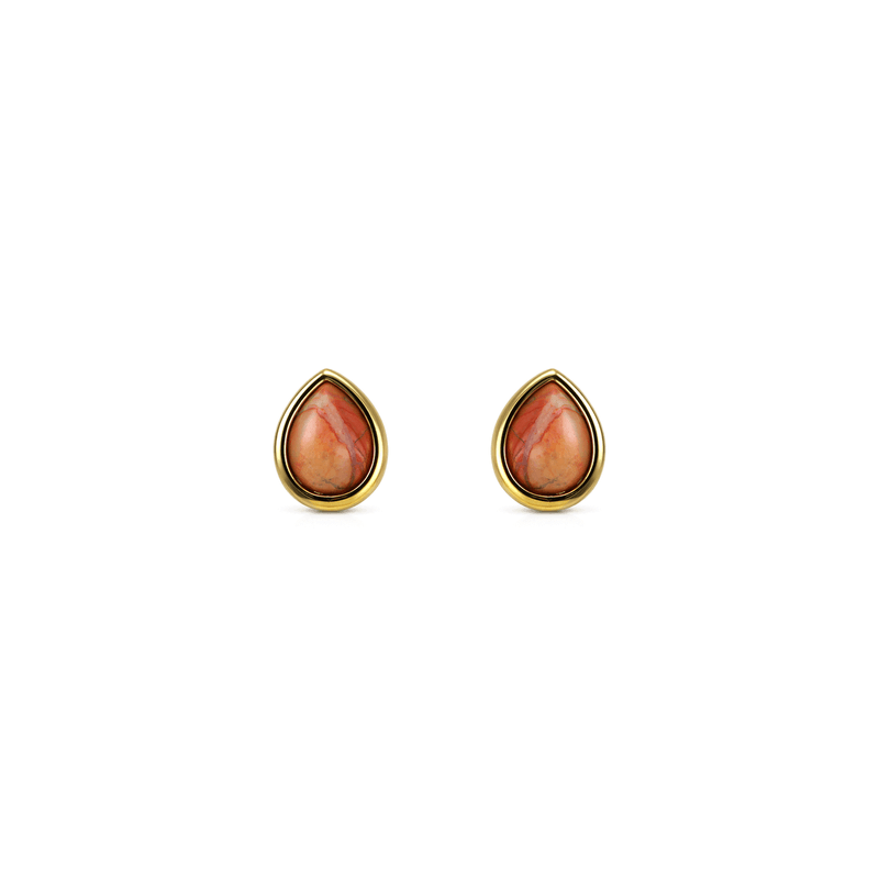 Brinco Gota Pedra Coral em Banho de Ouro 18K