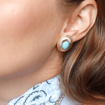 Brinco Oval Turquesa em Banho de Ouro 18K
