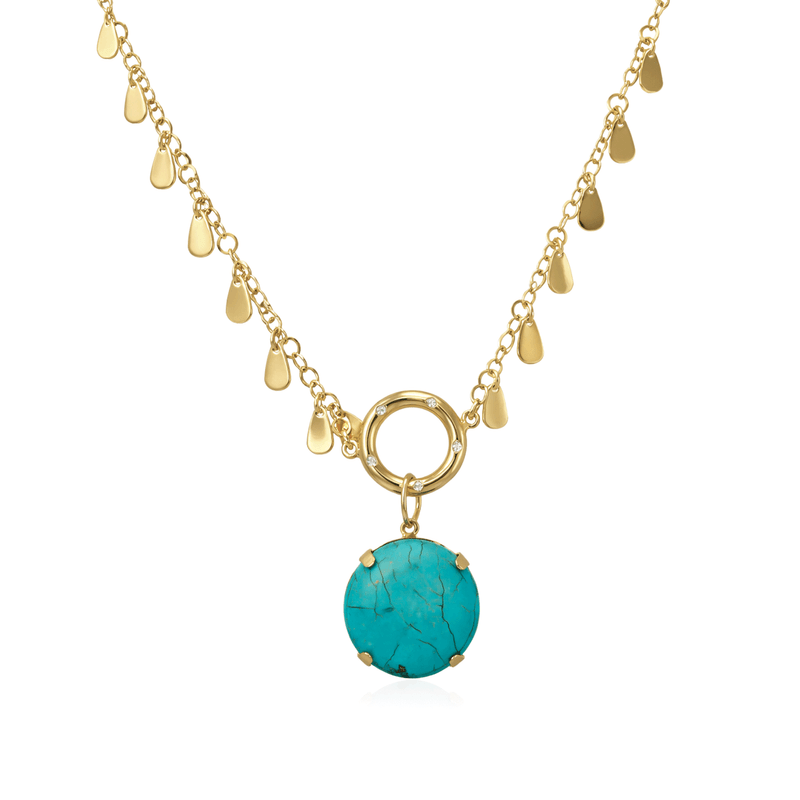 Colar Círculo e Pedra Turquesa em Banho de Ouro 18K