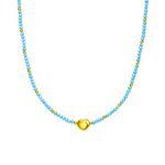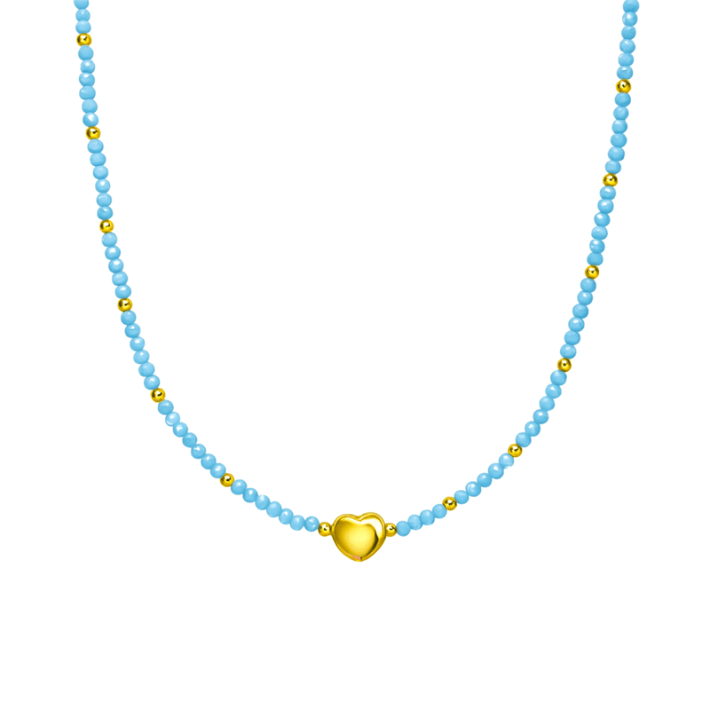Colar Cristais Azuis e Coração em Banho de Ouro 18K