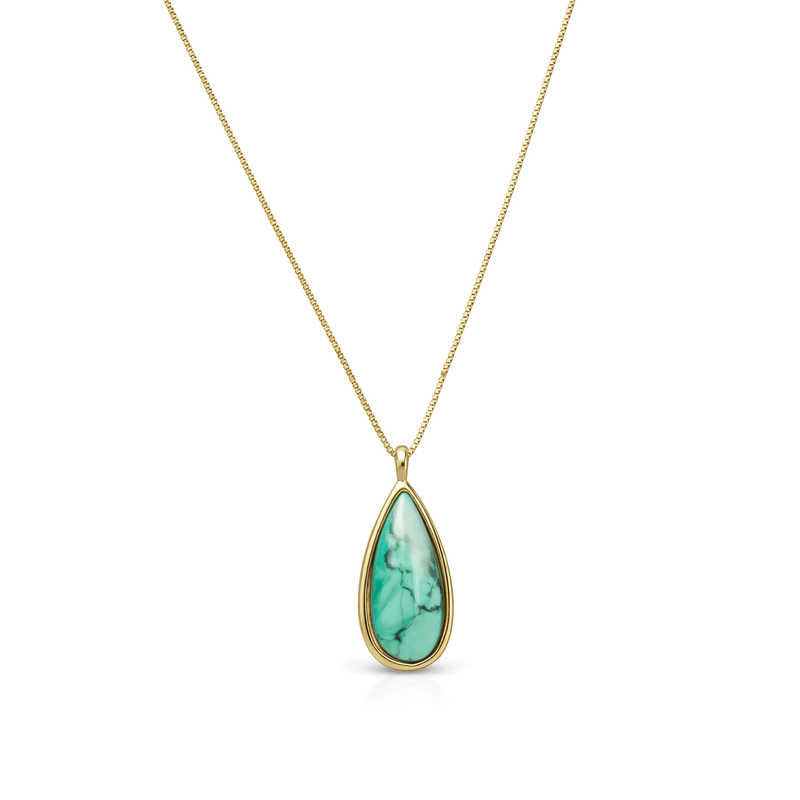 Colar Gota Pedra Turquesa em Banho de Ouro 18K