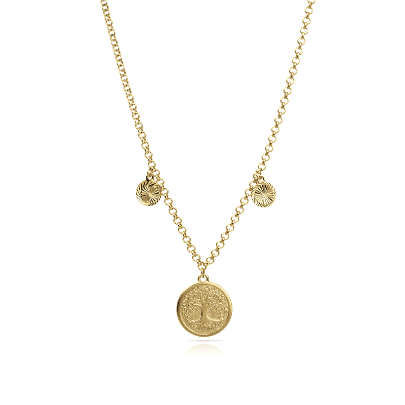 Colar Medalha Árvore da Vida em Banho de Ouro 18K