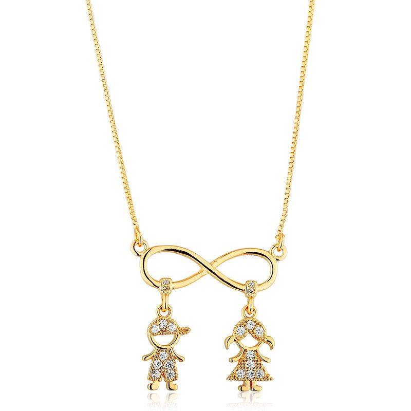 Colar Menino e Menina e Infinito em Banho de Ouro 18K