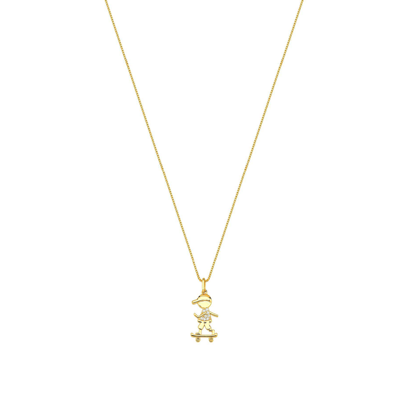 Colar Menino Skate com Zircônias em Banho de Ouro 18K