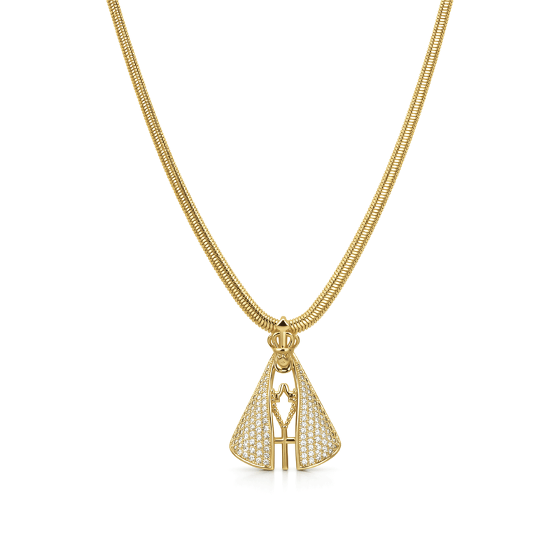 Colar Omega N.Sra Aparecida Cravejado em Banho de Ouro 18K