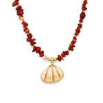 Colar Pedras Coral e Pingente Concha em Banho de Ouro 18K