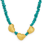 Colar Pedras Turquesa e Cochas em Banho de Ouro 18K
