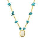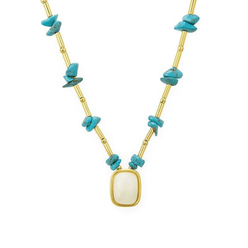 Colar Pedras Turquesa e Madrepérola em Banho de Ouro 18K