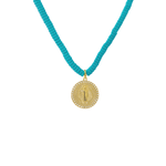 O colar com pedras turquesa e pingente São Bento em banho de Ouro 18K, com corrente em aço inoxidável, é uma joia repleta de significado e elegância. As pedras turquesa simbolizam equilíbrio e proteção, enquanto o pingente representa força, sabedoria e renovação. O contraste entre o brilho dourado e o tom vibrante das pedras cria um visual sofisticado e harmonioso, e a corrente em aço inoxidável garante resistência e durabilidade. Uma peça única, ideal para quem busca estilo, espiritualidade e sofisticação em um só acessório.