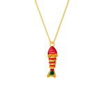 Colar Peixe Vermelho e Laranja em Banho de Ouro 18K
