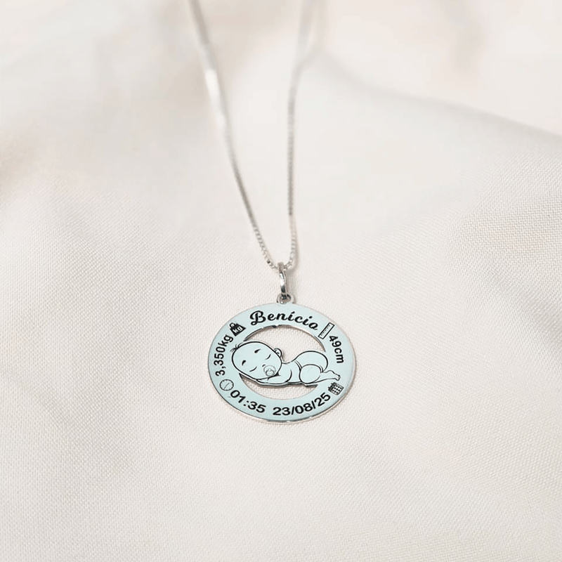Colar Personalizado Nascimento Bebê Menino em Prata 925