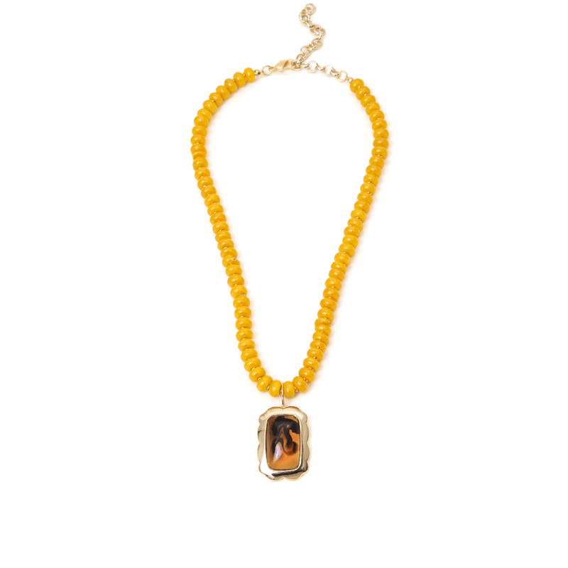 Colar Resinado Cor Citrino e Banho de Ouro 18K