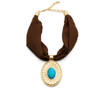 Colar Seda e Pingente com Turquesa em Banho de Ouro 18K