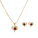 Conjunto Coração com Zircônia Vermelha em Banho de Ouro 18K