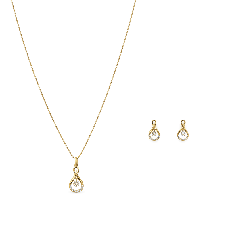 Conjunto Gota Vazada Cravejada em Banho de Ouro 18K
