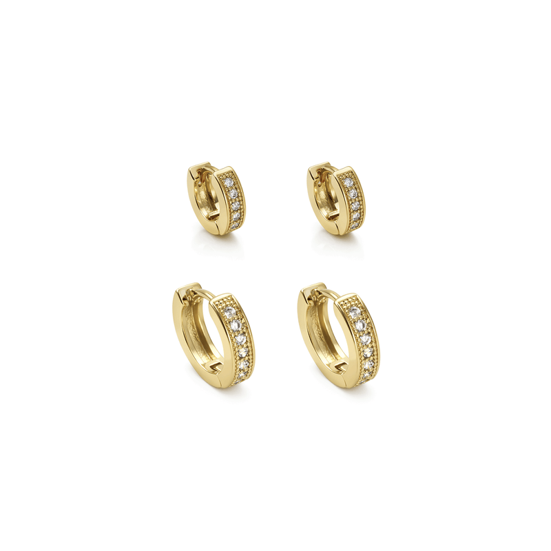 Dupla Argola Cravejada em Banho de Ouro 18K - PL28664