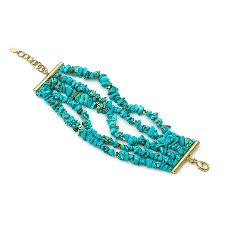 Pulseira 5 Fios Pedra Turquesa em Banho de Ouro 18K