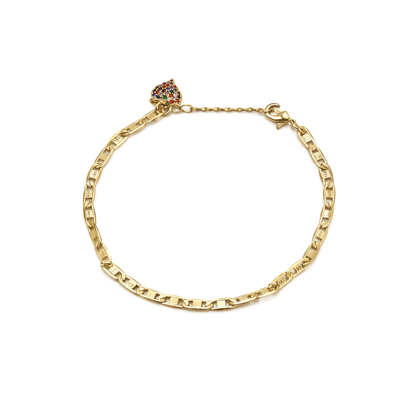 Pulseira Coração Cravejado Multicor em Banho de Ouro 18K