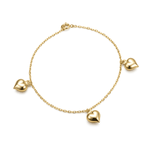 Pulseira Corações Lisos Abaulados em Banho de Ouro 18K