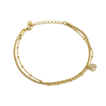 Pulseira Malha Dupla Cordão e Bolinhas em Banho de Ouro 18K