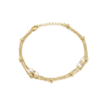 Pulseira Malha Dupla Pérola e Zircônia em Banho de Ouro 18K