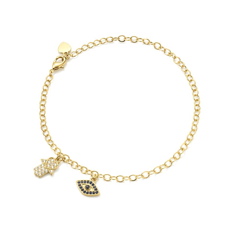 Pulseira Mão de Fatima e Olho Grego em Banho de Ouro 18K